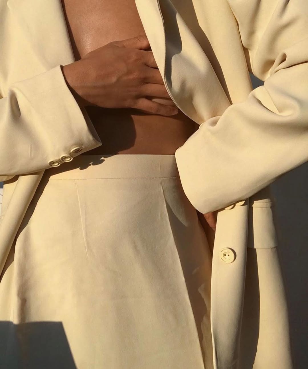 Брючный костюм oversize в ярком оттенке (лайм, коралл, голубой, серый), кроп-топ или базовая белая рубашка под пиджак, белые кроссовки или лодочки в зависимости от настроения – вот что поможет выглядеть стильно и в будни, и в праздники.